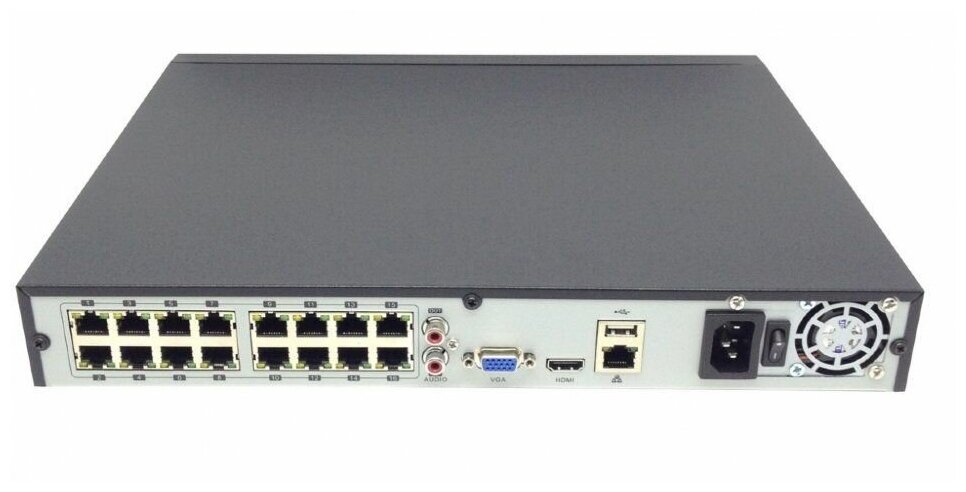 Видеорегистратор HiWatch DS-N316/2P(C) 16-ти канальный IP c 16-ю PoE интерфейсами Видеовход: 16 IP 8Мп; Аудиовход: 1 канал RCA; Видеовыход: VGA и HDMI