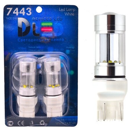 Отзывы на Светодиодная автомобильная лампа W21W - T20 - 7443 - W3х16q Cree - 5W + (Линза) (Комплект 2 лампы.)