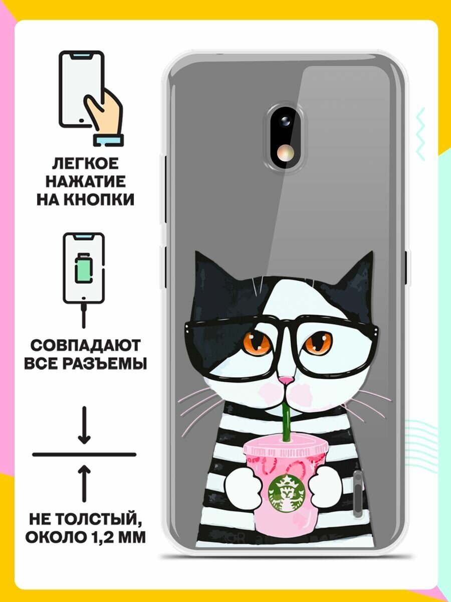 Силиконовый чехол на Nokia 2.2 Кот с кофе / для Нокия 2.2 информация: