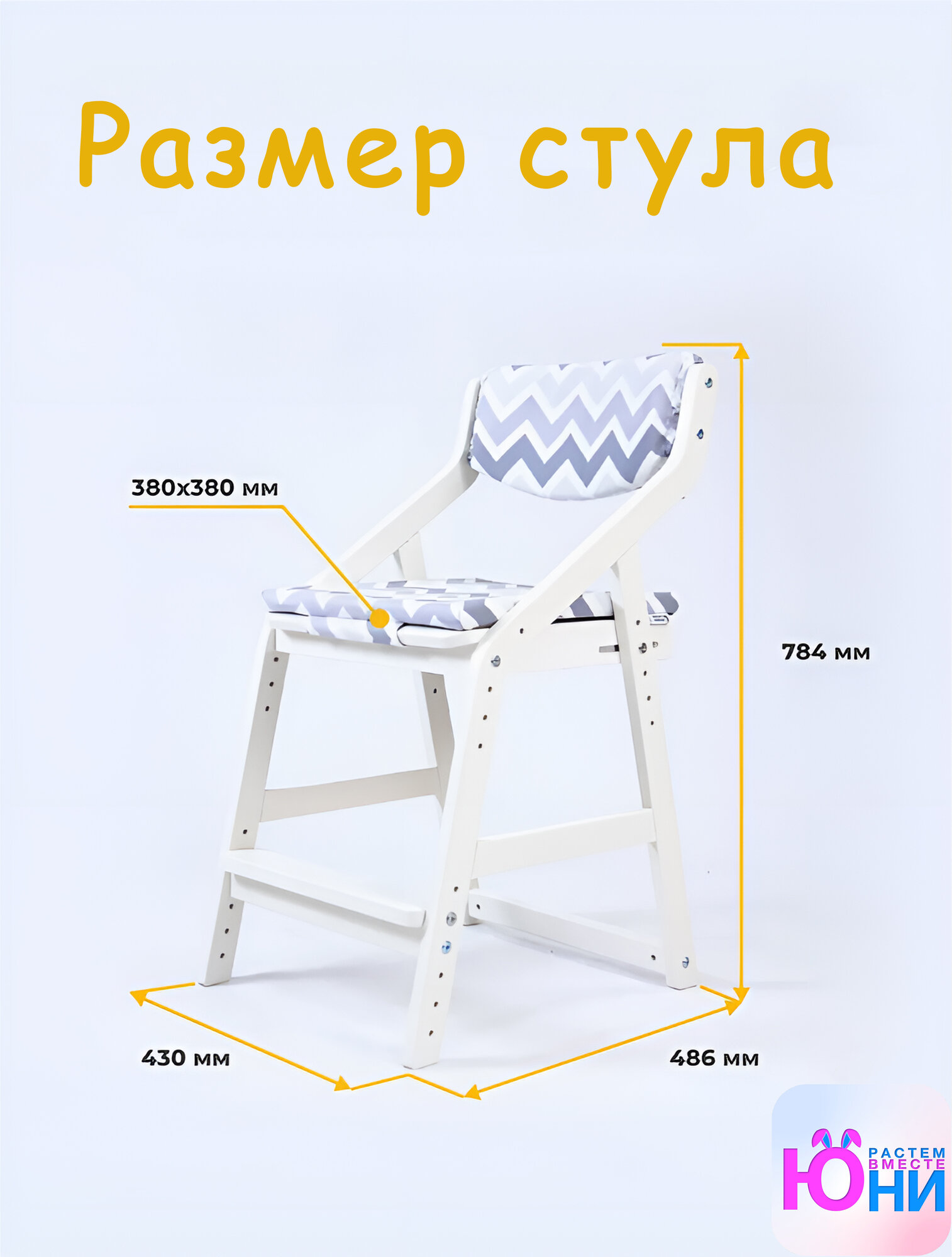Стул детский регулируемый по высоте для школьника "Робин WOOD" Белый с чехлом Зигзаг информация: