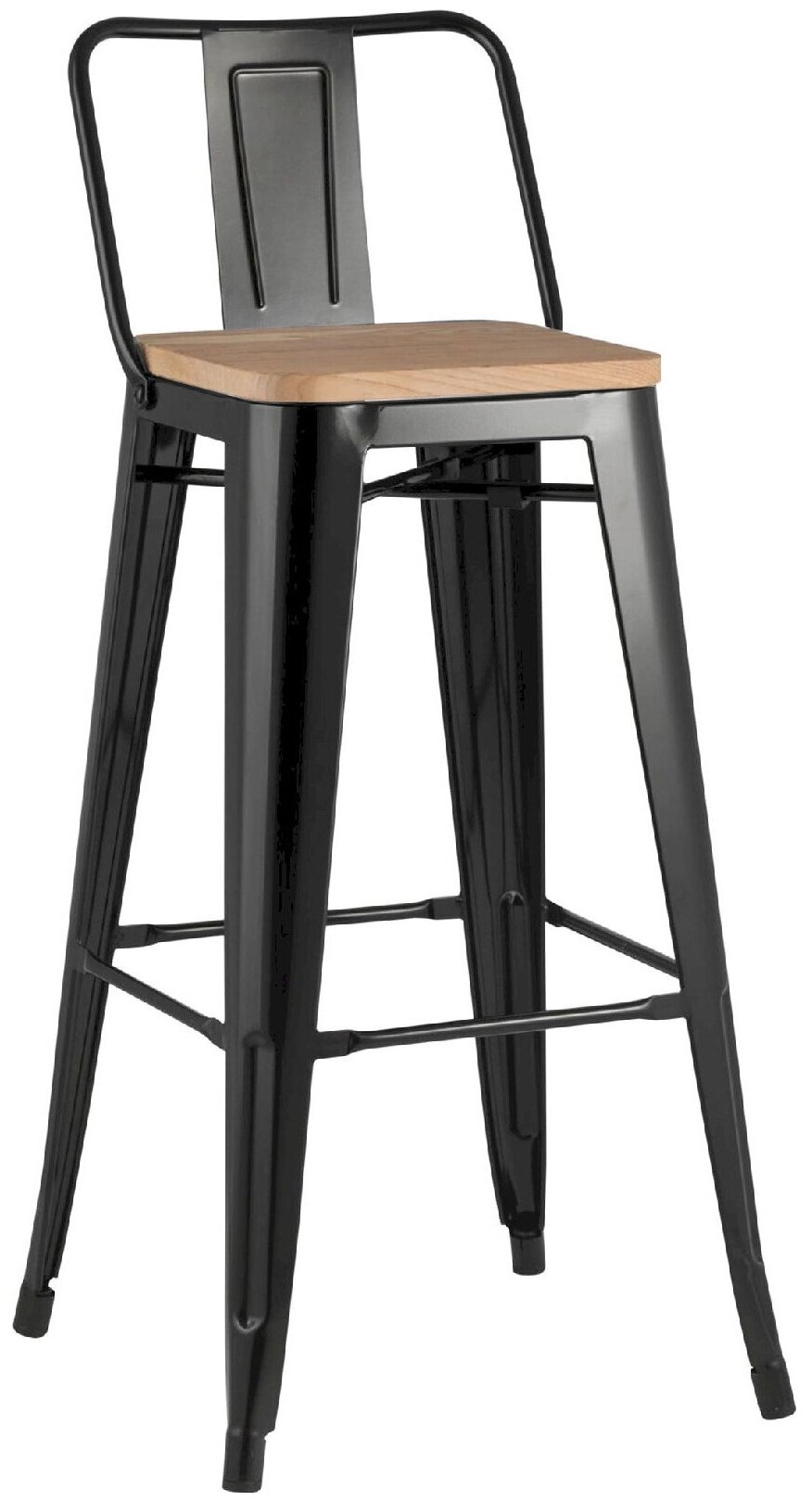 Комплект 2 барных стула металлических с спинкой Tolix Wood, черный/натуральный, металлический информация: