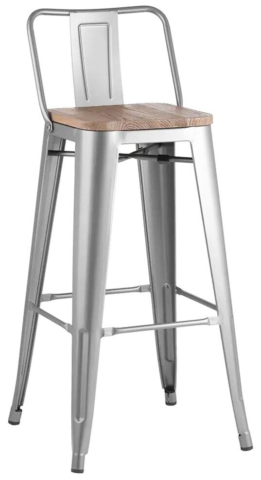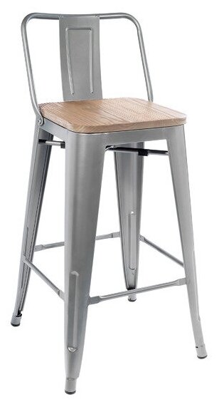 Комплект 2 барных стула металлических с спинкой Tolix Wood, cерый/натуральный, металлический информация: