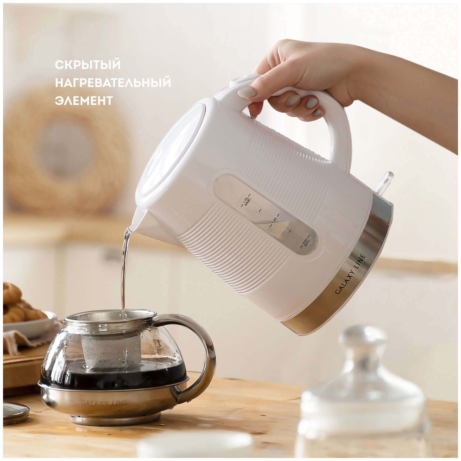 Чайник Galaxy LINE GL0225, белый