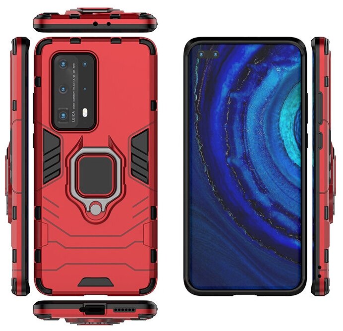 Противоударный чехол с кольцом Panther Case для Huawei P40 Pro+ красный информация: