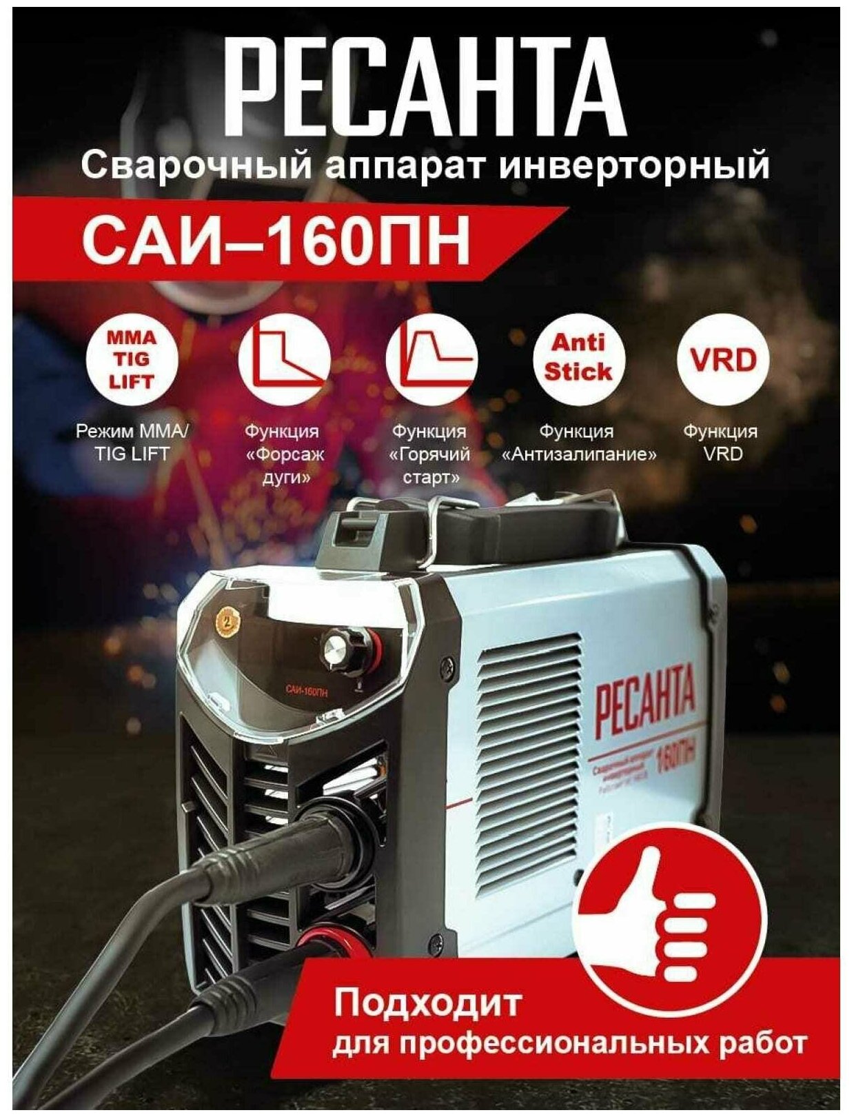 Инвенторный сварочный аппарат для дома 140-260В, 10-160 А РЕСАНТА САИ-160 (электросварка) ручная дуговая сварка + угольник В подарок информация: