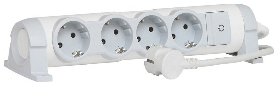 Удлинитель с заземлением Legrand 4 розетки с кабелем 1,5 м, цвет: бело-серый , арт. 694552