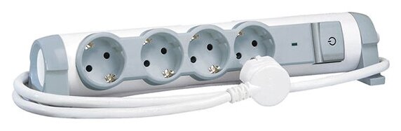 Удлинитель с заземлением Legrand 4 розетки с кабелем 1,5 м, цвет: бело-серый , арт. 694552