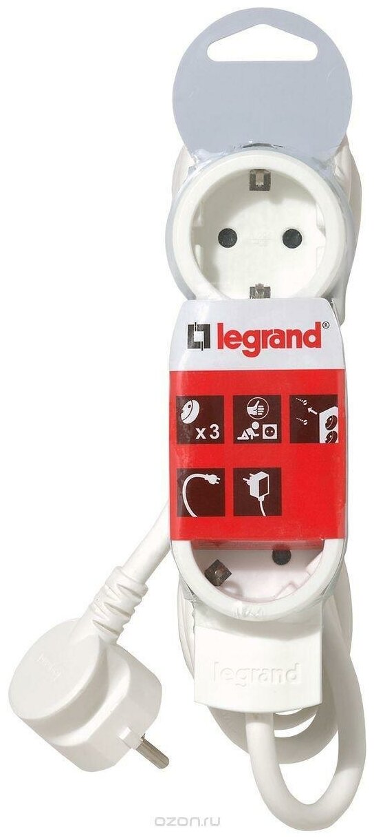 Отзывы на Удлинитель бытовой Legrand 3 розетки с заземлением 3х1.5 мм 5 м цвет белый/серый