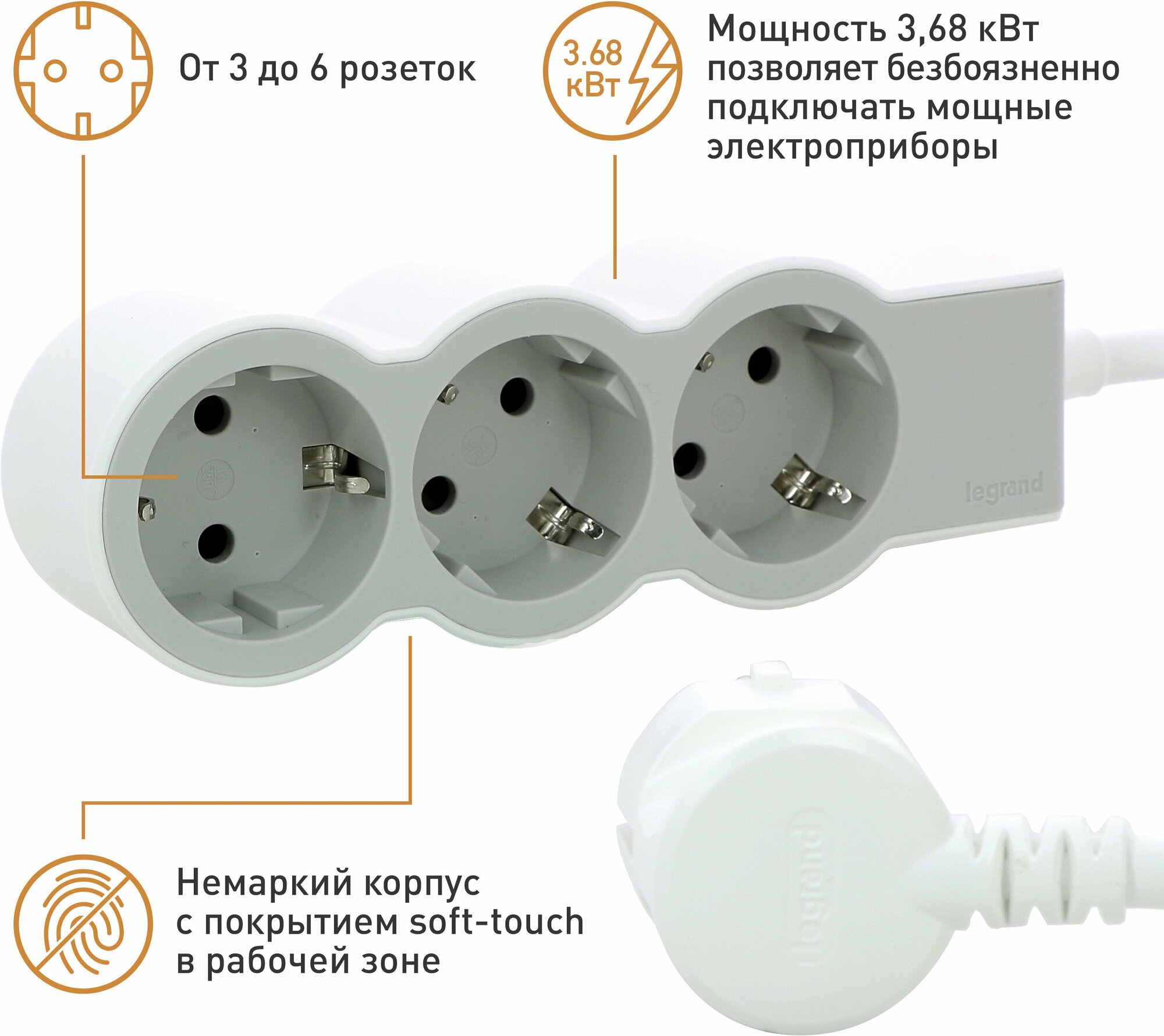 Удлинитель Legrand Комфорт 694621, 3 розетки, с/з, 16А / 3500 Вт