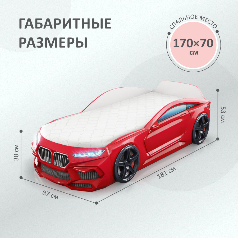 Кровать-машинка Romeo Красный, с подсветкой фар, с матрасом 16 800 ₽