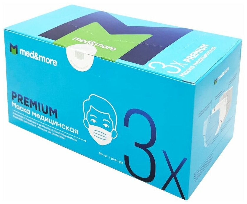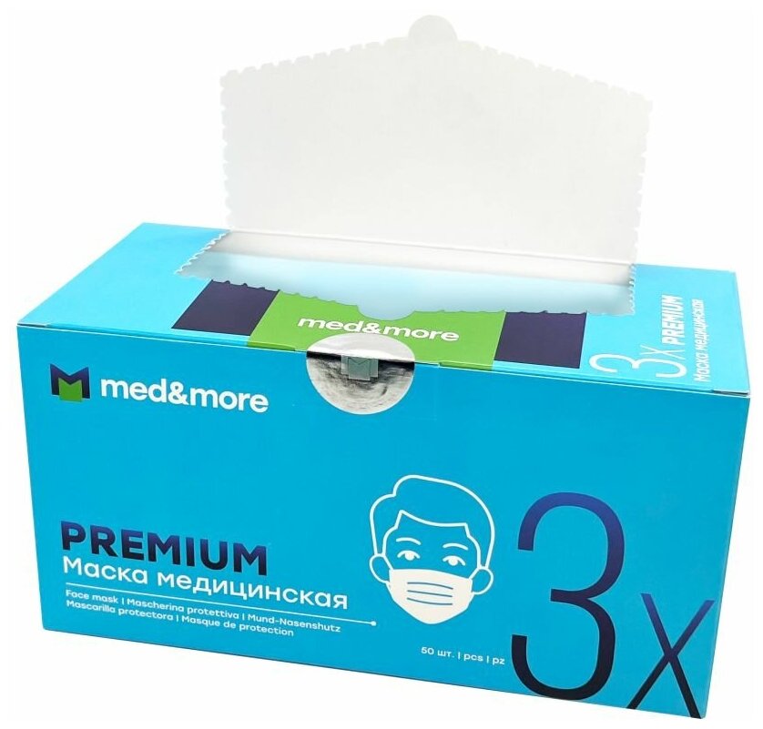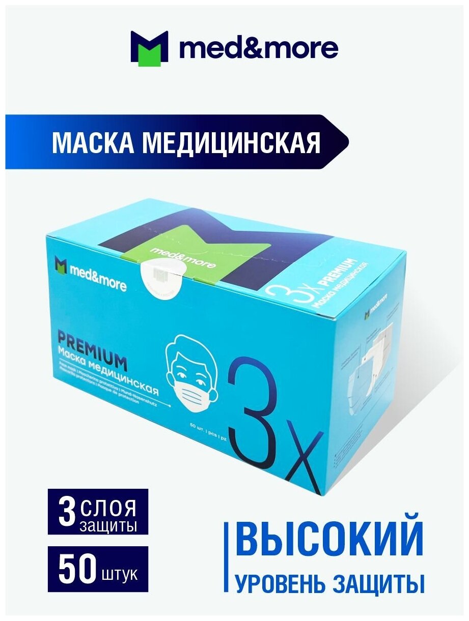 Маска медицинская PREMIUM MED AND MORE голубая 50 штук/упак. информация: