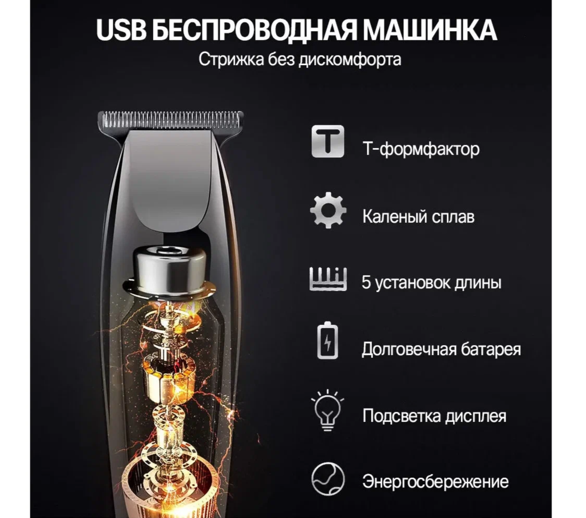 Машинка для Стрижки Волос Профессиональная SK-630 беспроводная универсальная USB-зарядка и триммер для бороды