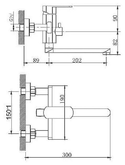 Смеситель на раковину настенный Эверест B46-350 с круглым поворотным изливом, кран-буксы 1/2", хром