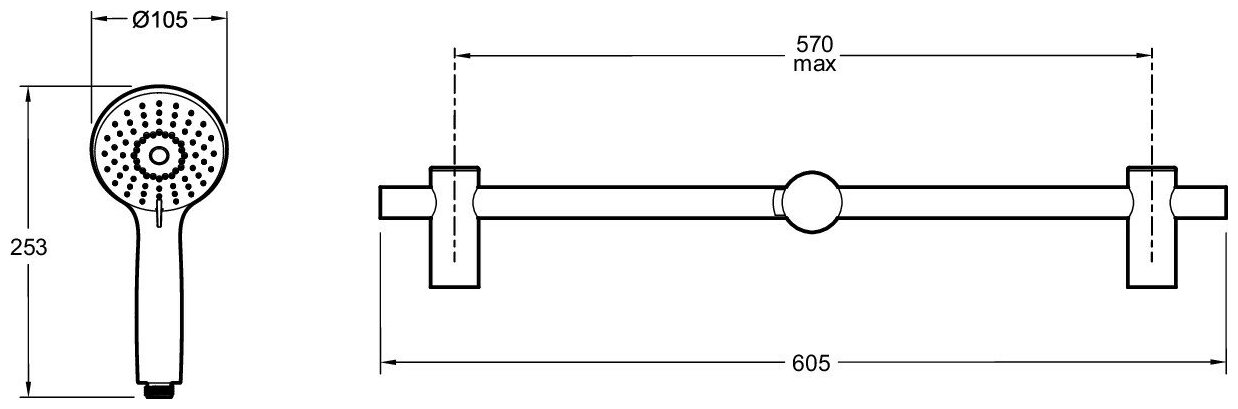 | Особенности | держатель душевой лейки / регулируемый верхний душ |