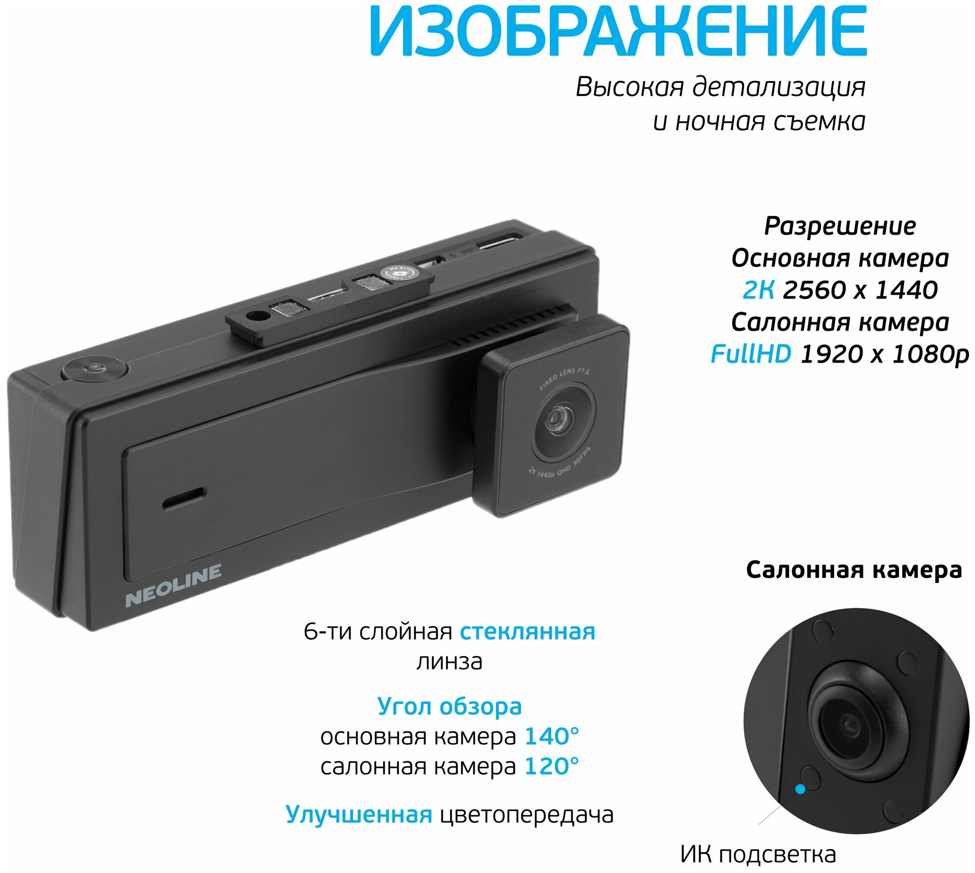 Автомобильный видеорегистратор Neoline черный 1440x2560 1440p 140гр.