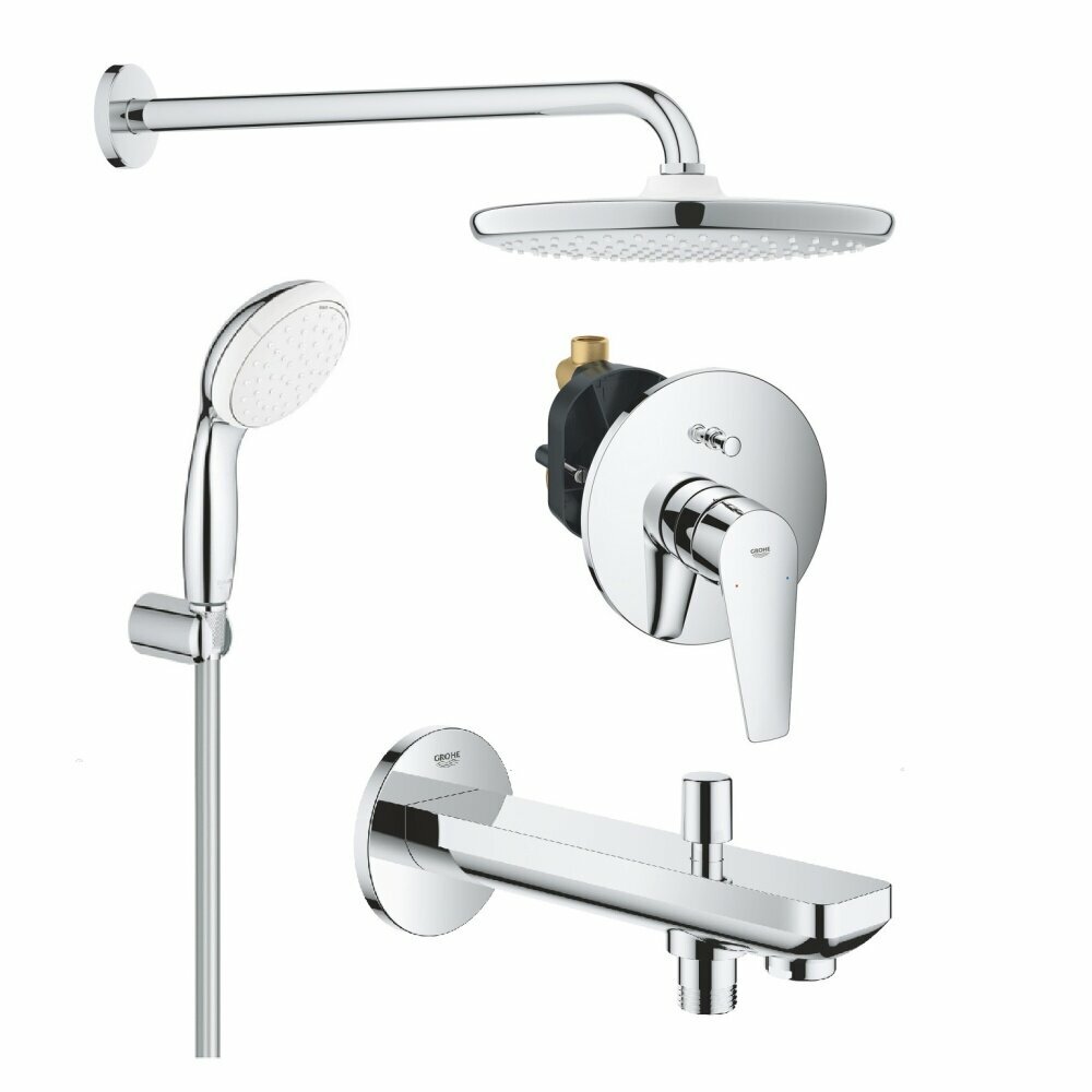 Смеситель для ванны Grohe BauFlow с душевым гарнитуром, хром (23601000, 26083002)