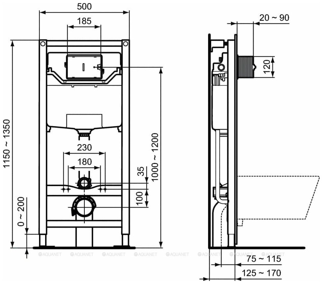 10 цен на Система инсталляции для унитаза 3 в 1 Ideal Standard Prosys R020467 с кнопкой смыва R0117AA (хром глянцевый) в комплекте
