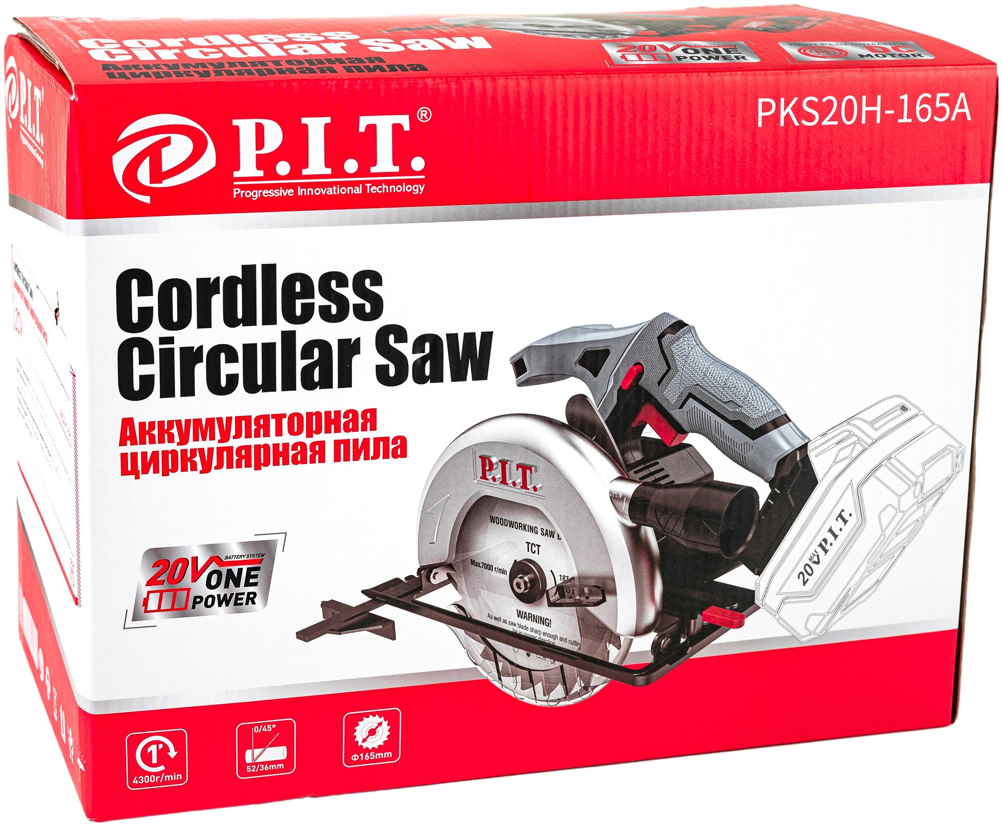 Пила циркулярная аккумуляторная PIT PKS20H-165A SOLO (без Акк. и ЗУ)