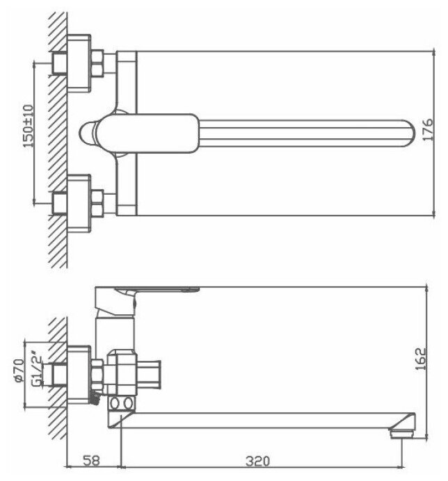 Смеситель на раковину настенный Эверест B46-350 с круглым поворотным изливом, кран-буксы 1/2", хром