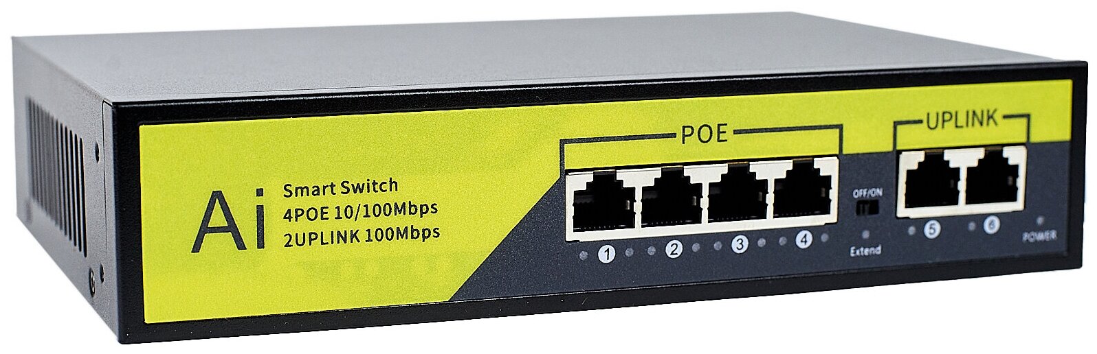 10 цен на PoE коммутатор (свитч) KS Vision, 4 PoE порта + 2 Uplink порта