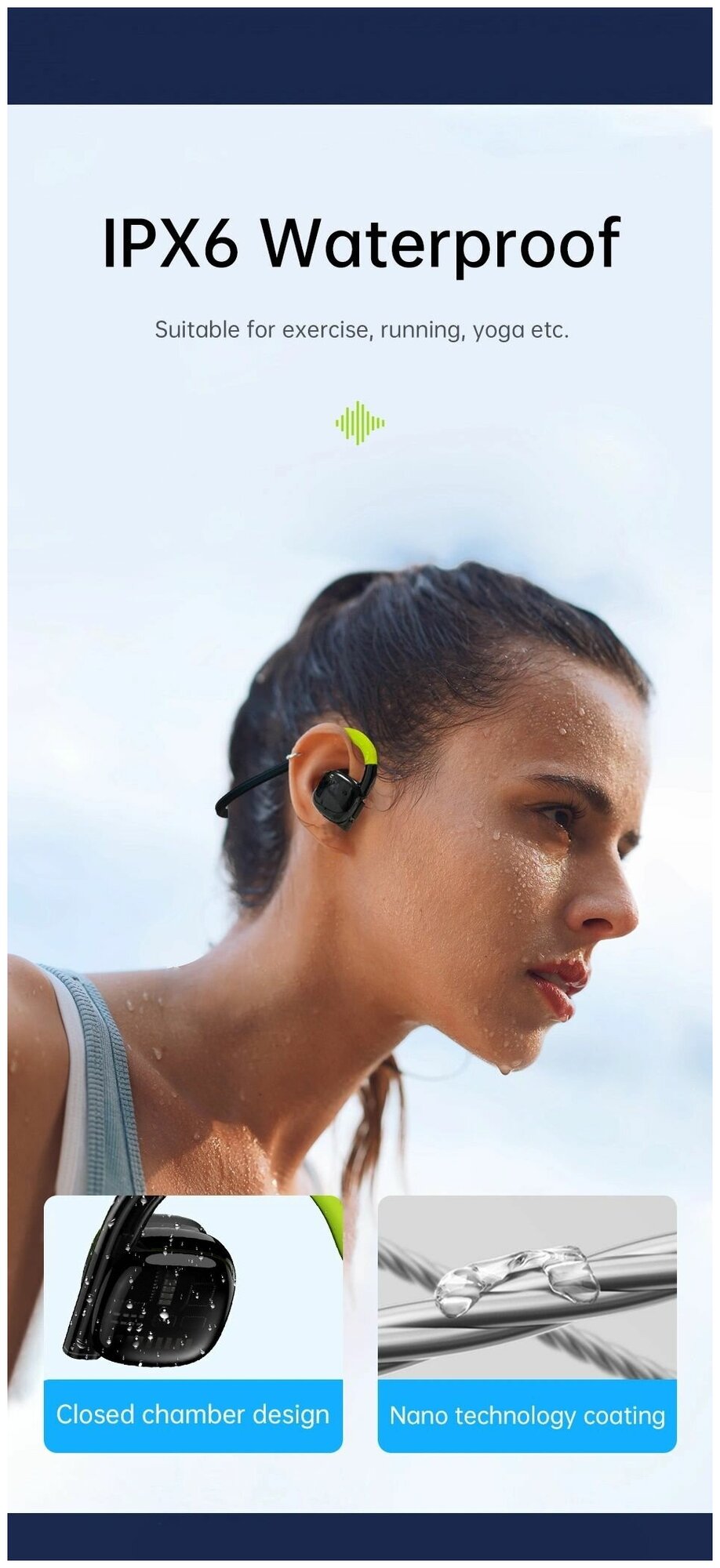 Наушники беспроводные, спортивные WiWU Marathon Pro с воздушной проводимостью - Зеленые