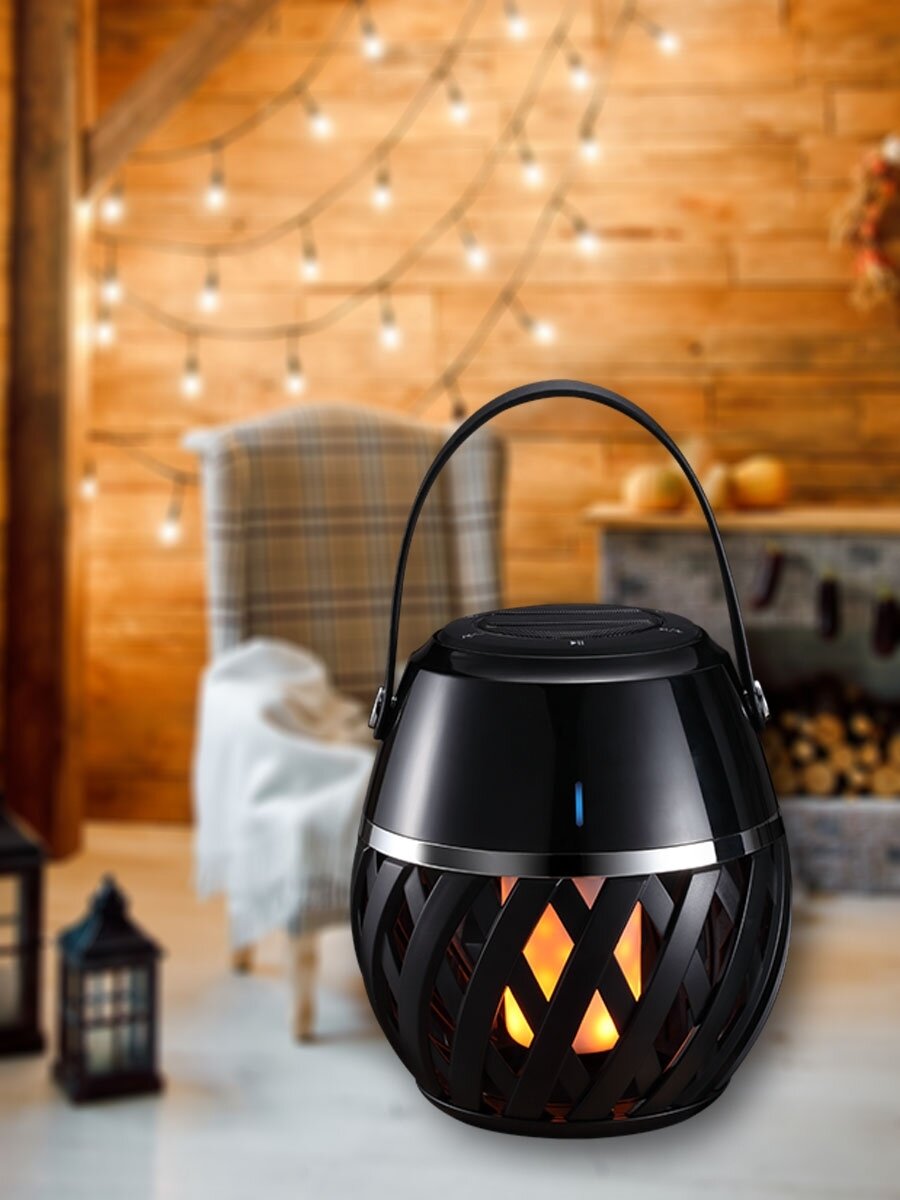 ULD-R201 LED/FLAME BLACK Светод. светильник с bluetooth колонкой 75db,эф. пламени,встр.аккум.1800mAh