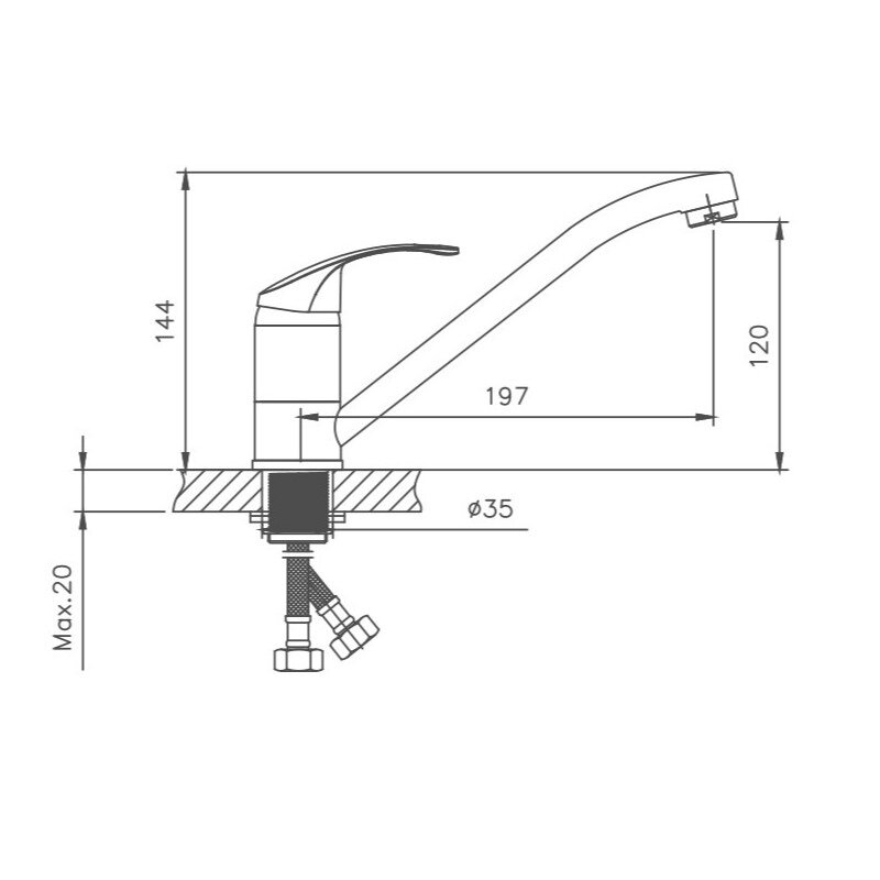 Смеситель для кухни с подключением к фильтру с питьевой водой из нержавеющей стали SUS304 Calorie CAL50116-3