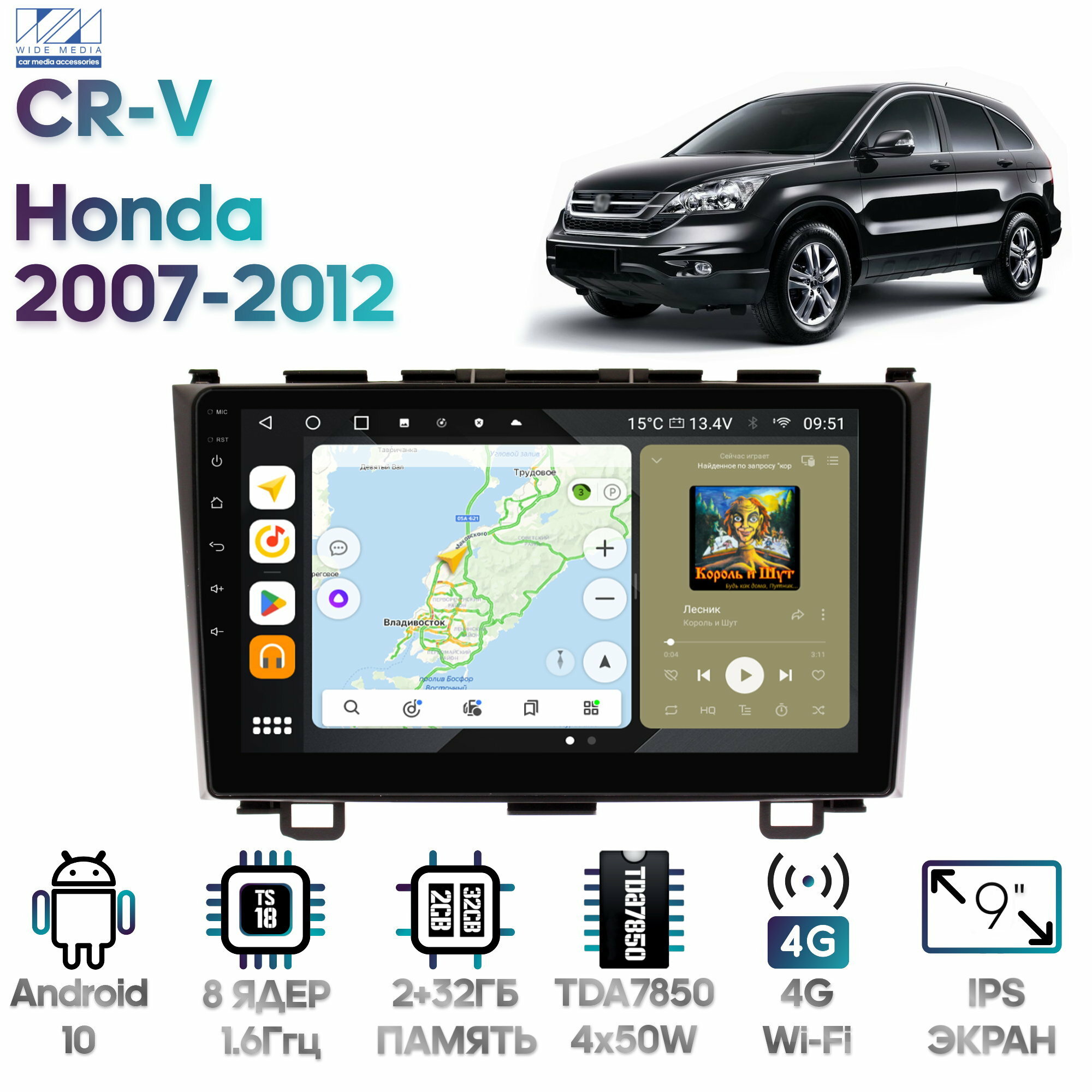 Штатная магнитола Wide Media Honda CR-V 2007 - 2012 [Android 10, 2/32GB, 8 ядер, DSP, 4G] информация:
