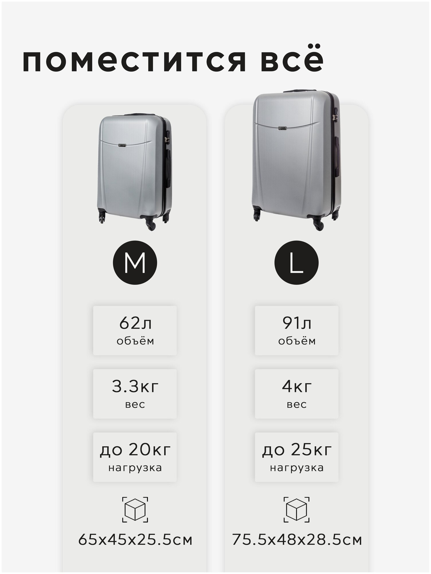 Отзывы на Комплект чемоданов 2шт, Тасмания, Серебристый, размер L,M средний, большой, ручная кладь,дорожный, не тканевый