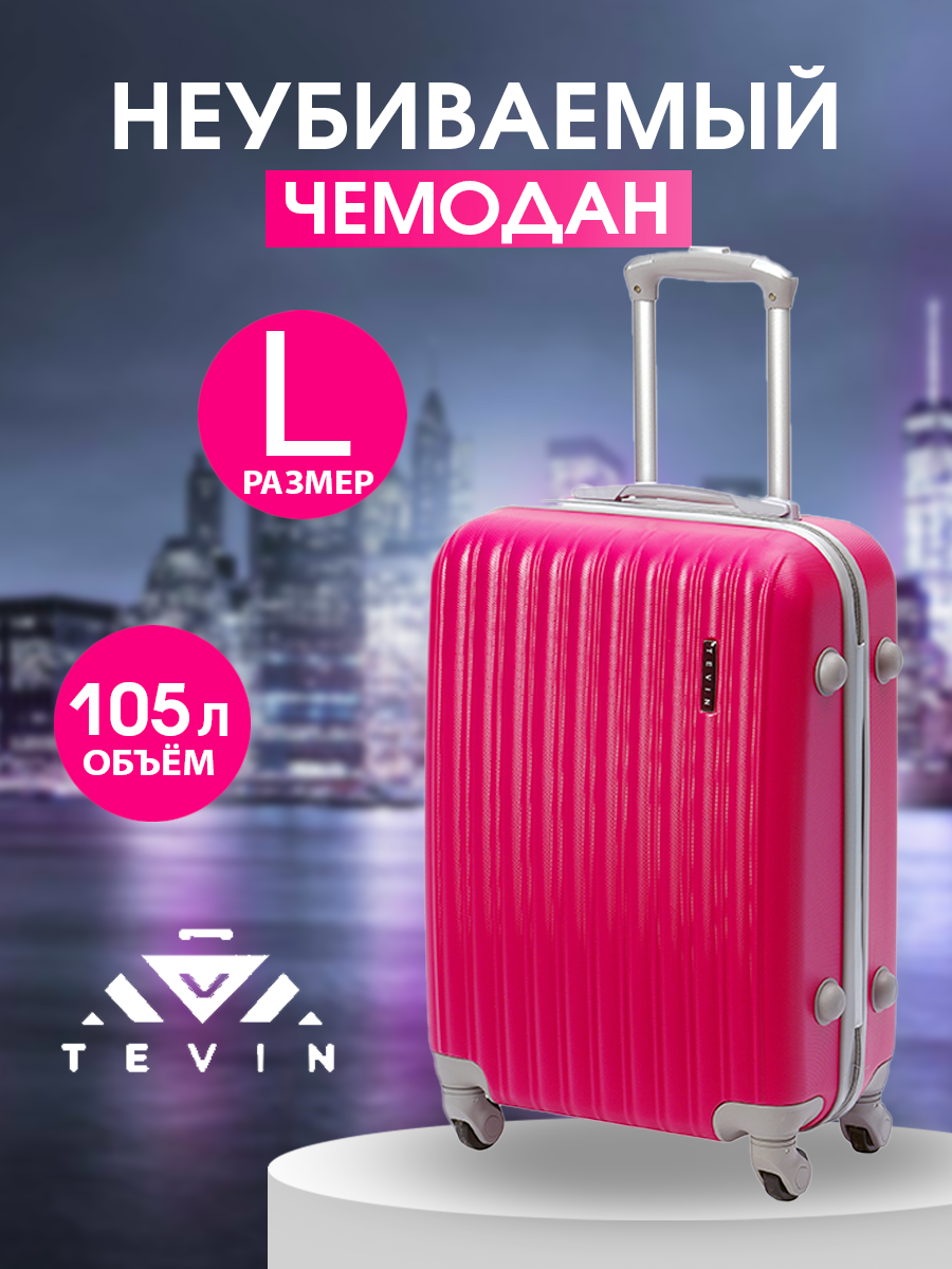 Чемодан на колесах дорожный огромныйсемейный багаж для путешествий для девочки l TEVIN размер Л 73 см 105 л прочный abs (абс) пластик Розовый яркий информация:
