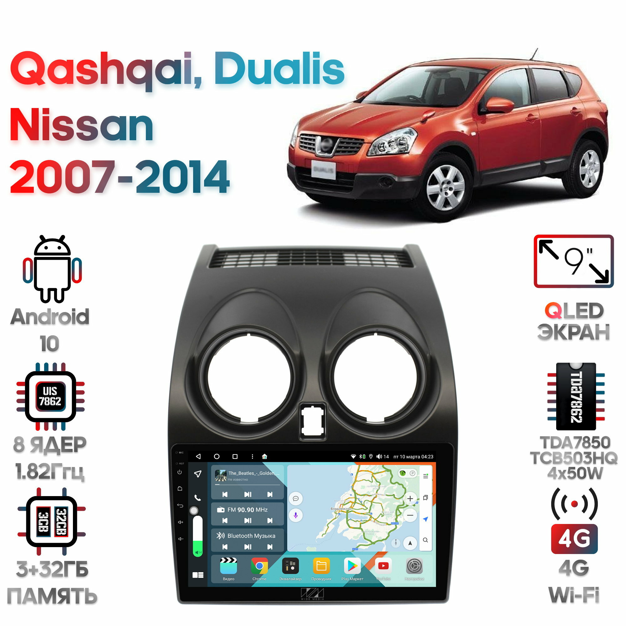 Штатная магнитола Wide Media Nissan Qashqai, Dualis 2007 - 2014 [Android 10, 9 дюймов, 3/32GB, 8 ядер, TDA7850, DSP, SPDIF, QLED, 1280*720] информация: