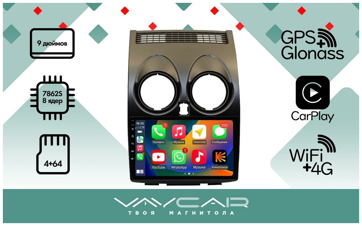 Штатная Магнитола для NISSAN Qashqai 2007-2013 VAYCAR 09VO4 (Android 10.0, QLED 1280x720, 4 + 64, 8 ядер, 4G + Wi-Fi) информация: