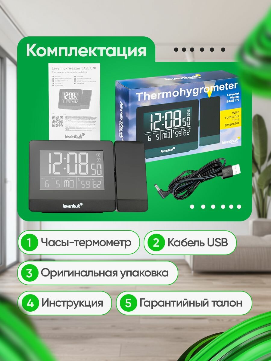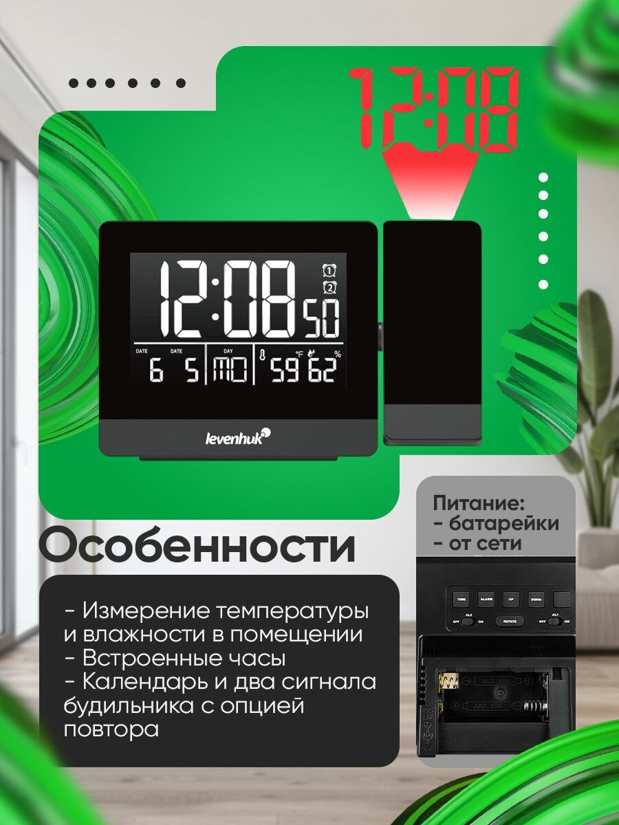 Часы-термометр Levenhuk Wezzer BASE L70 с проектором информация: