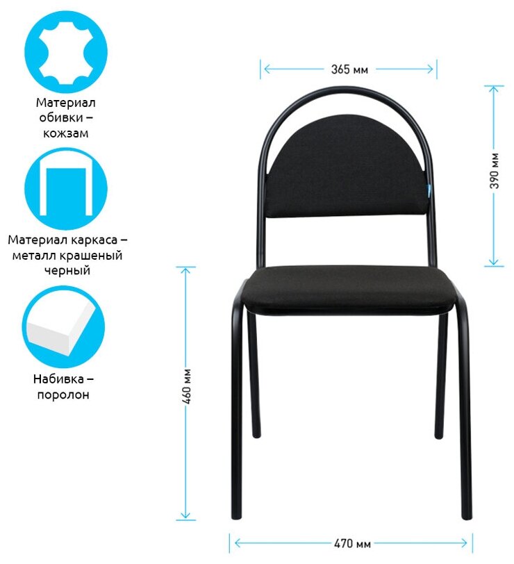 Стул Helmi HL-F02 "Стандарт", каркас черный, обивка кожзам черный 330637 информация: