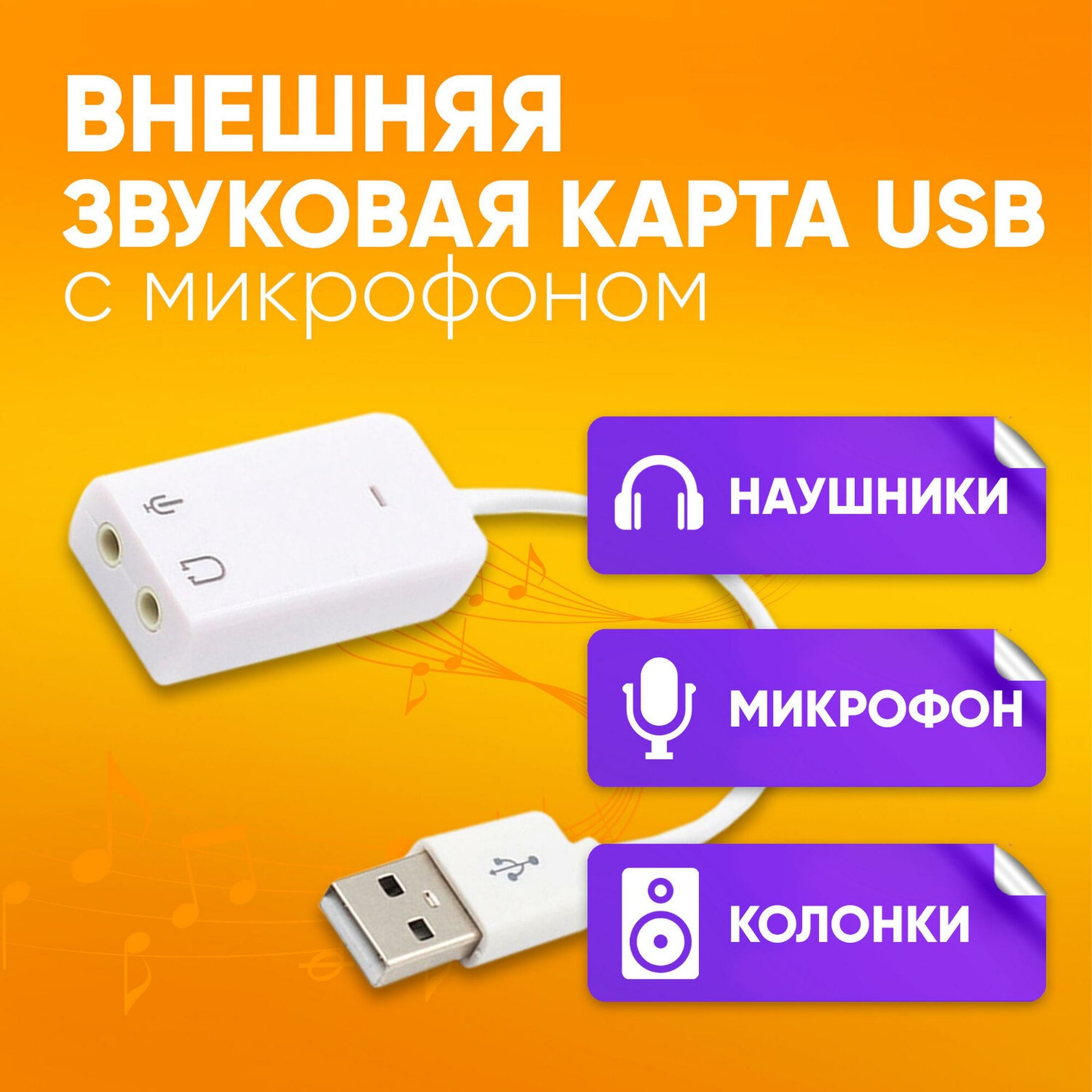 Внешняя звуковая карта USB Jack 3.5 микрофон наушники / для ноутбука, ПК, Mac информация: