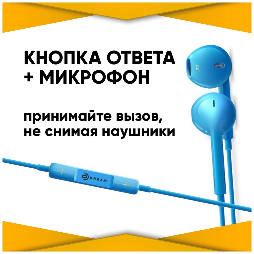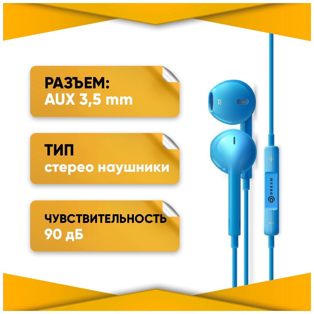 Наушники для телефона проводные Dream aux 3.5mm 1m внутриканальные вакуумные Синие информация: