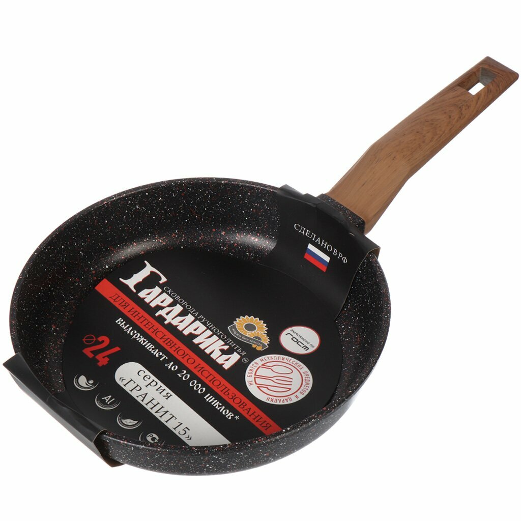 Сковорода Гардарика 1024-15 Гранит с ручкой soft-touch под дерево, 24см