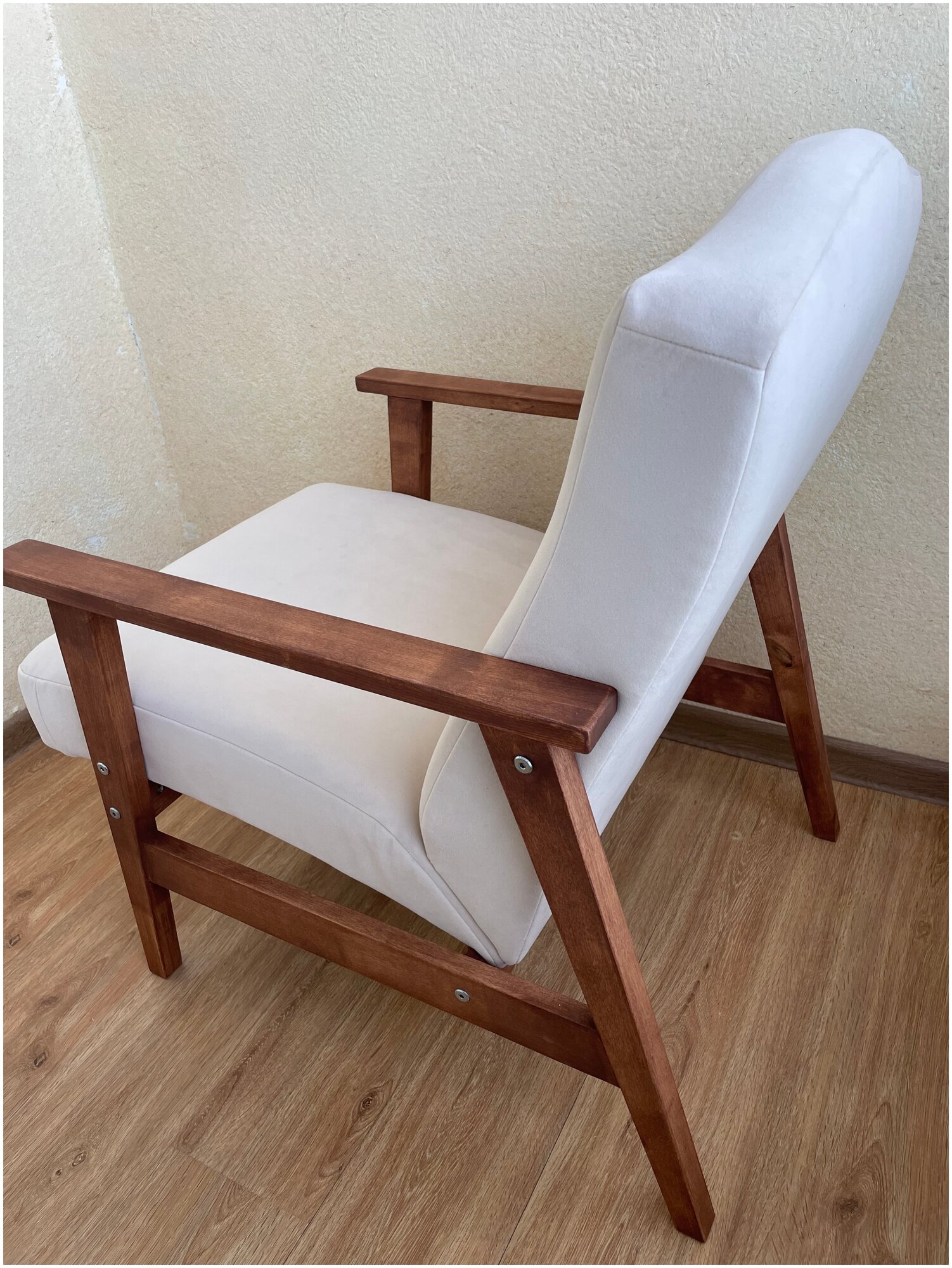 Отзывы на Кресло для дома RETRO LOUNGE из массива, молочный велюр, основание - цвет орех (матовое), спинка с подъемом