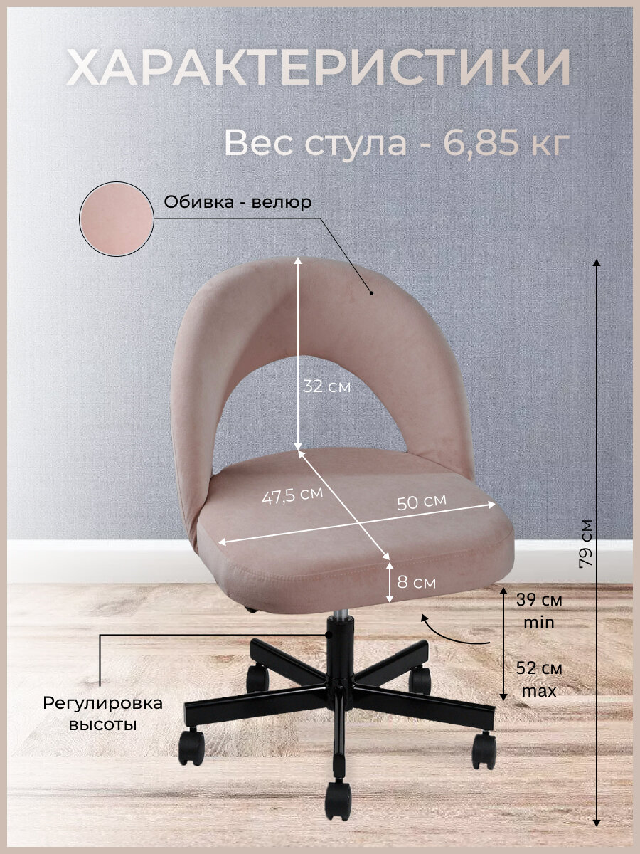 Отзывы на Стул для кухни, дома, офиса Сансет, черное пятилучье, пыльно-розовый