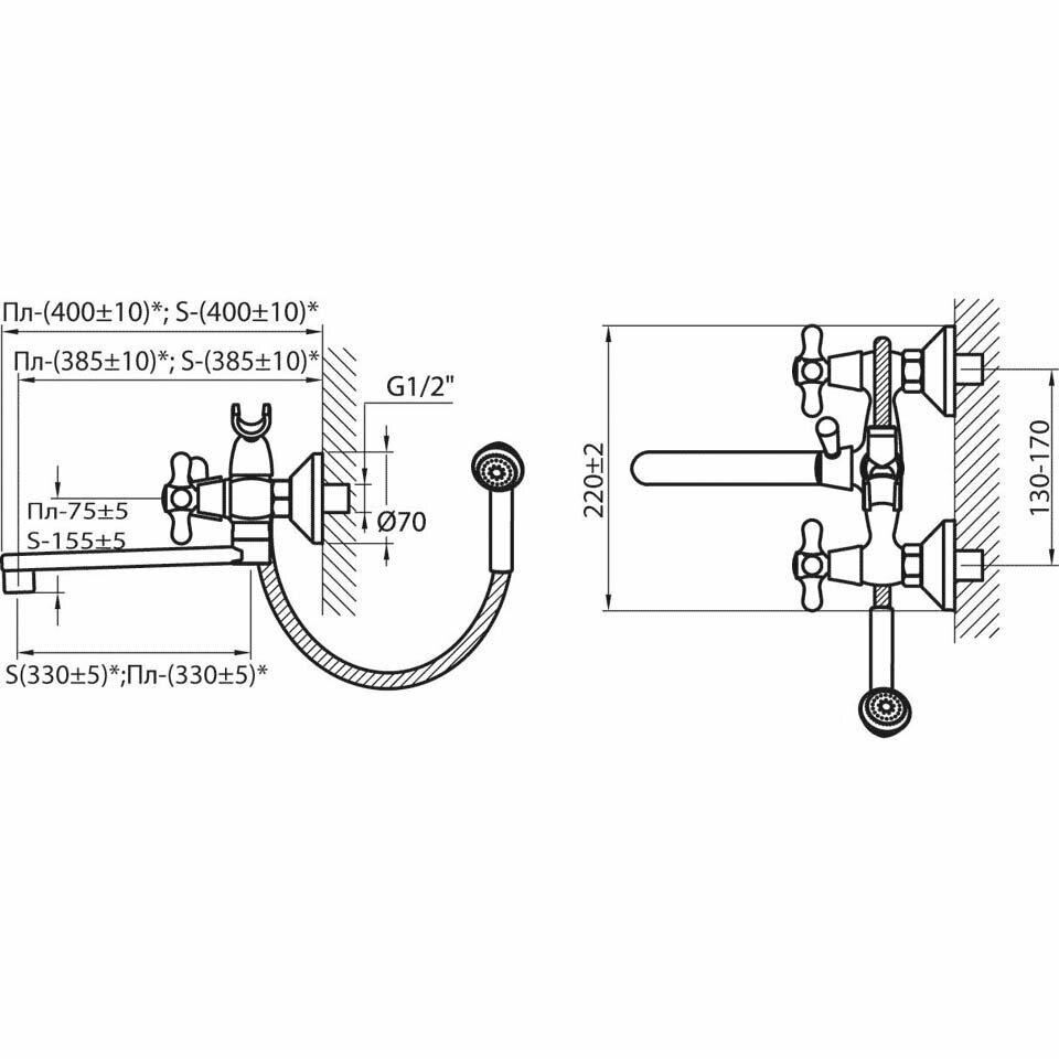 Смеситель на раковину настенный Эверест B46-350 с круглым поворотным изливом, кран-буксы 1/2", хром