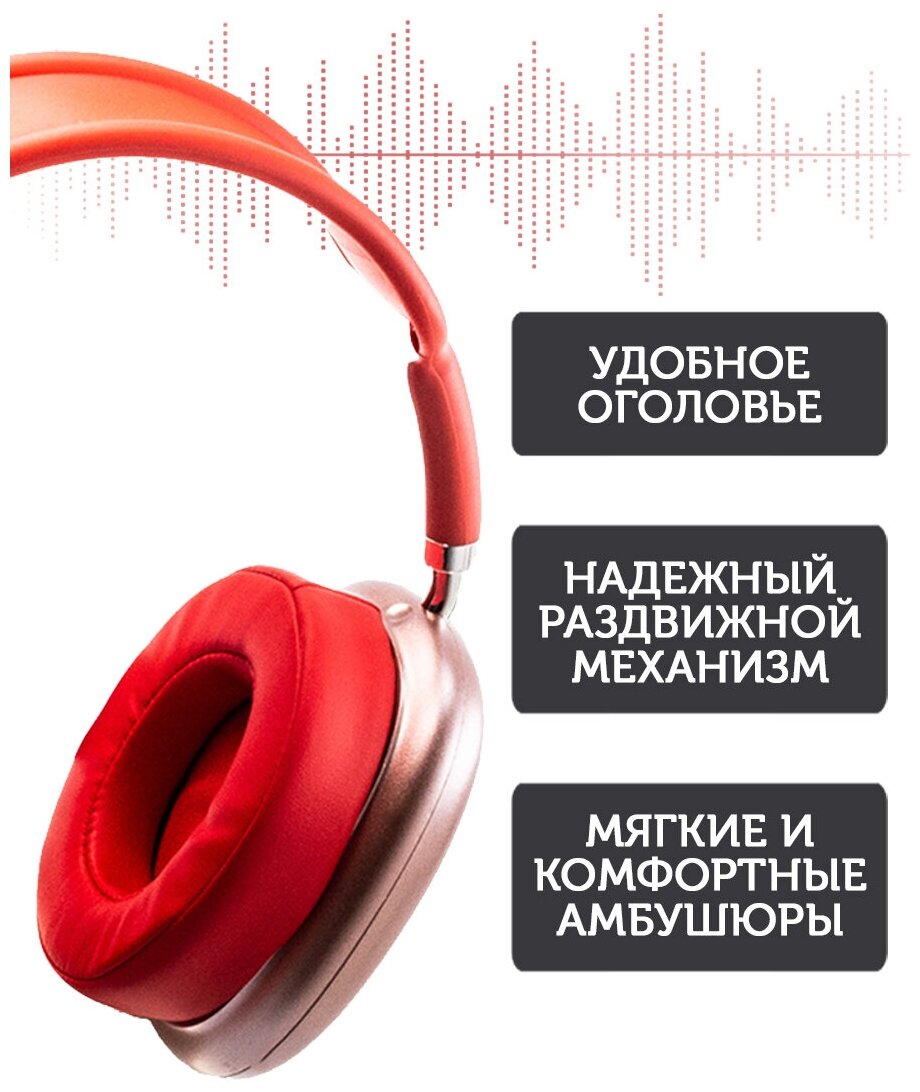 Накладные полноразмерные беспроводные наушники с микрофоном Bluetooth 5.0, AMFOX, TWS-P9, красные /гарнитура для телефона android huawei honor samsung информация: