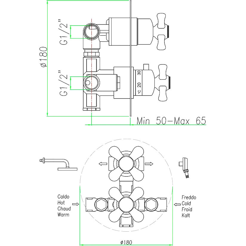 Webert Смеситель для ванны и душа встроенный WEBERT AURORA AU860101017 хром/золото