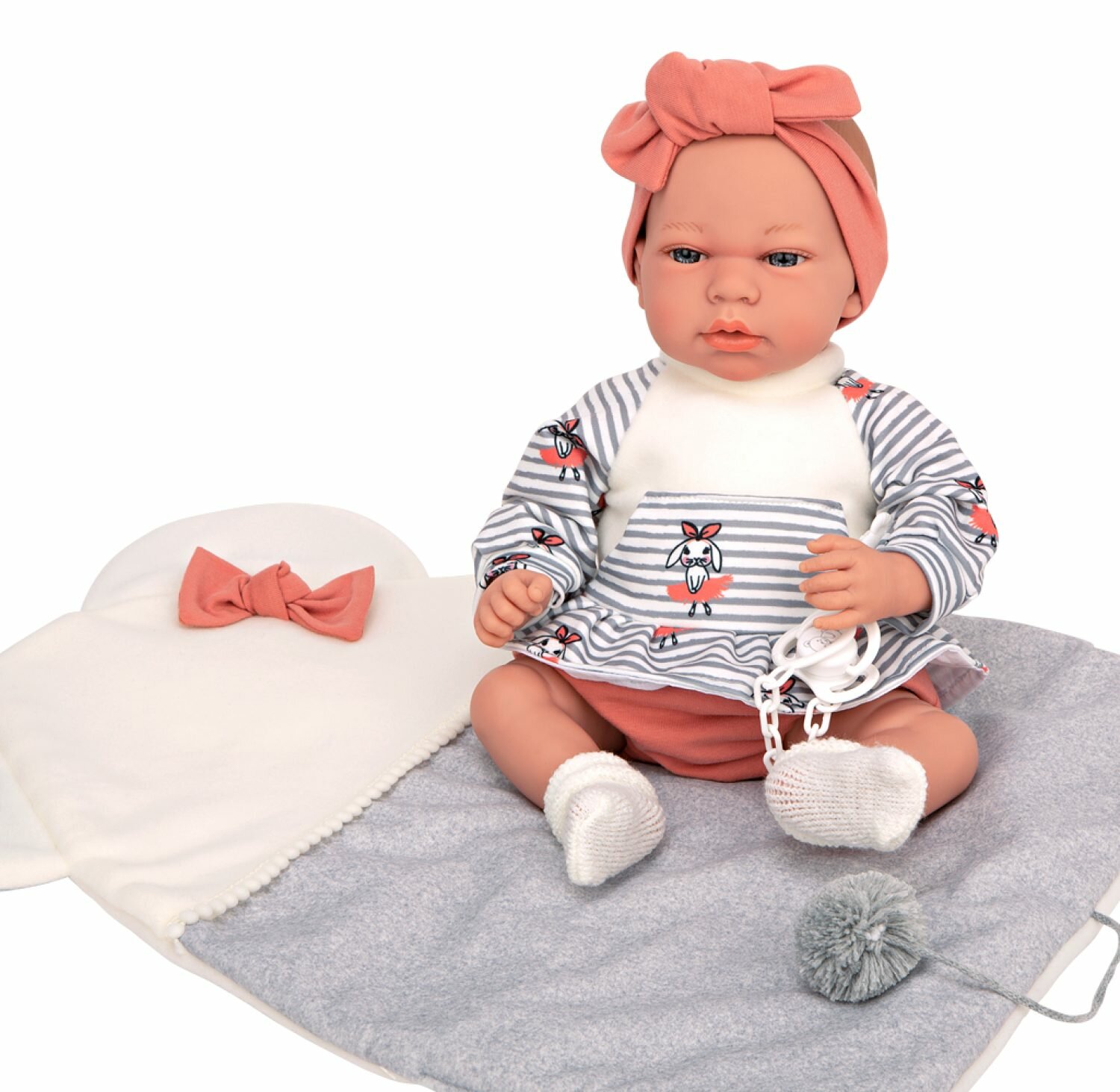 Кукла Arias ELEGANCE ANDIE мягкая, 40 см, с соской и подушкой, коробка информация: