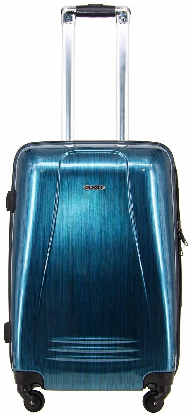 Чемодан Рион+ (RION+) R416, Пластик, 65 см, 52 литра, 4 колеса, M (56-70 см), усиленный толстый пластик, лазурный