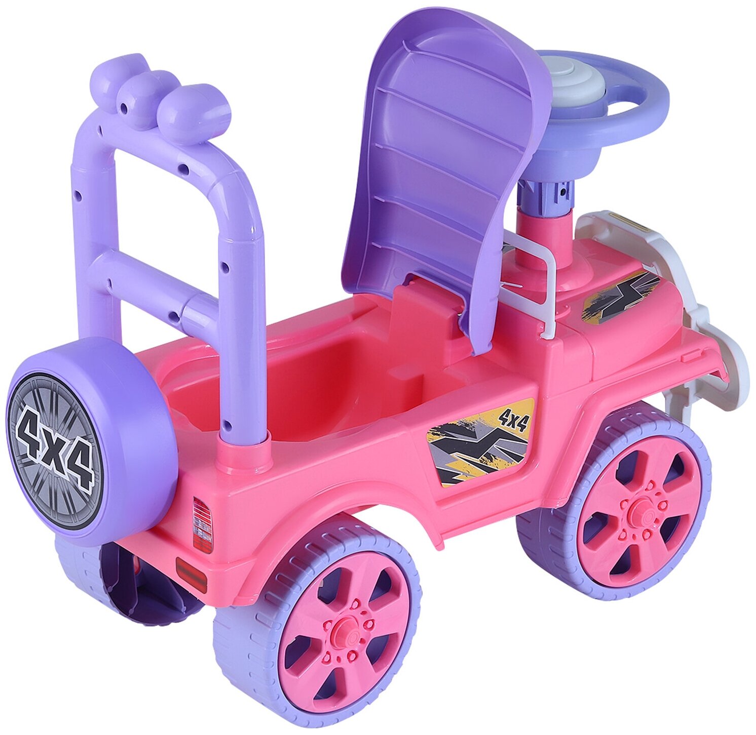 Каталка детская толокар, внедорожник, джип, пушкар, пластиковые колеса, высокая спинка, багажник, розовый, JB5300680 2 708 ₽