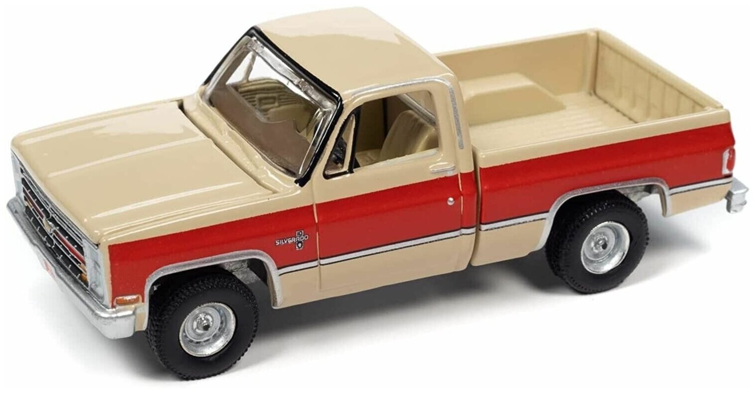 10 цен на Модель коллекционная AUTO WORLD 1:64 1987 Chevy Silverado R10 Fleetside Tan Bright Red