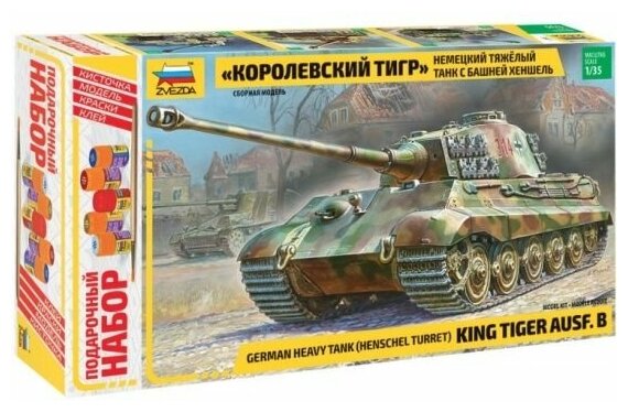 10 цен на Сборная Модель военной техники/ Немецкий тяжелый танк Королевский Тигр с башней Хеншель М1:35, 423 детали, 30 см/ Подарочный набор/ Клей и краски в комплекте/ Коллекционная модель для сборки