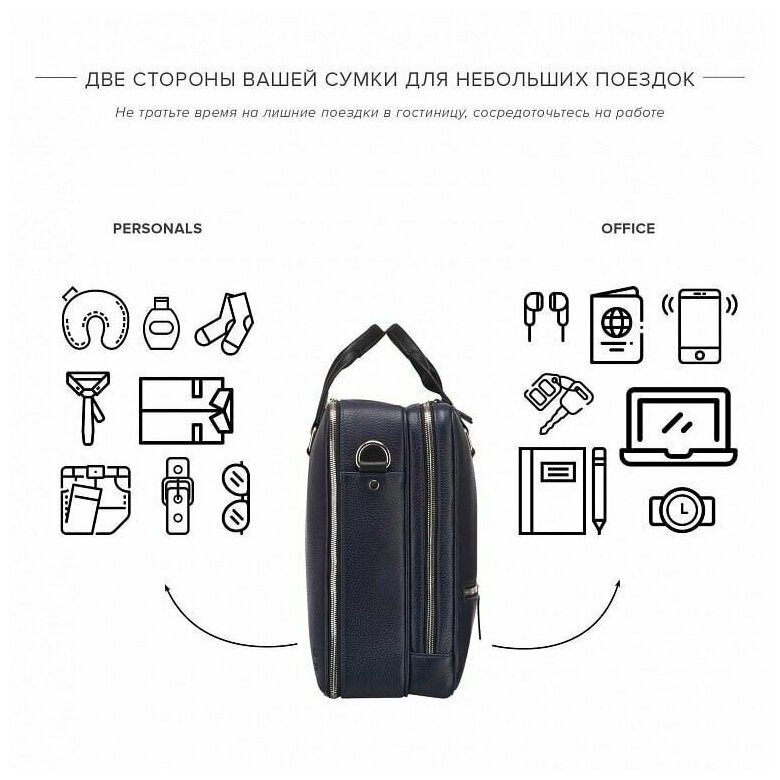 Сумка мужская деловая для командировок Brialdi Lagrange relief navy (синяя) для формата A4 или ноутбука 15,6 дюймов из натуральной кожи информация: