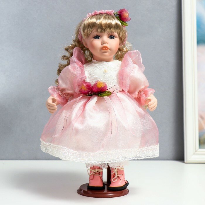 --- Кукла коллекционная керамика "Флора в бело-розовом платье и лентой на голове" 30 см информация: