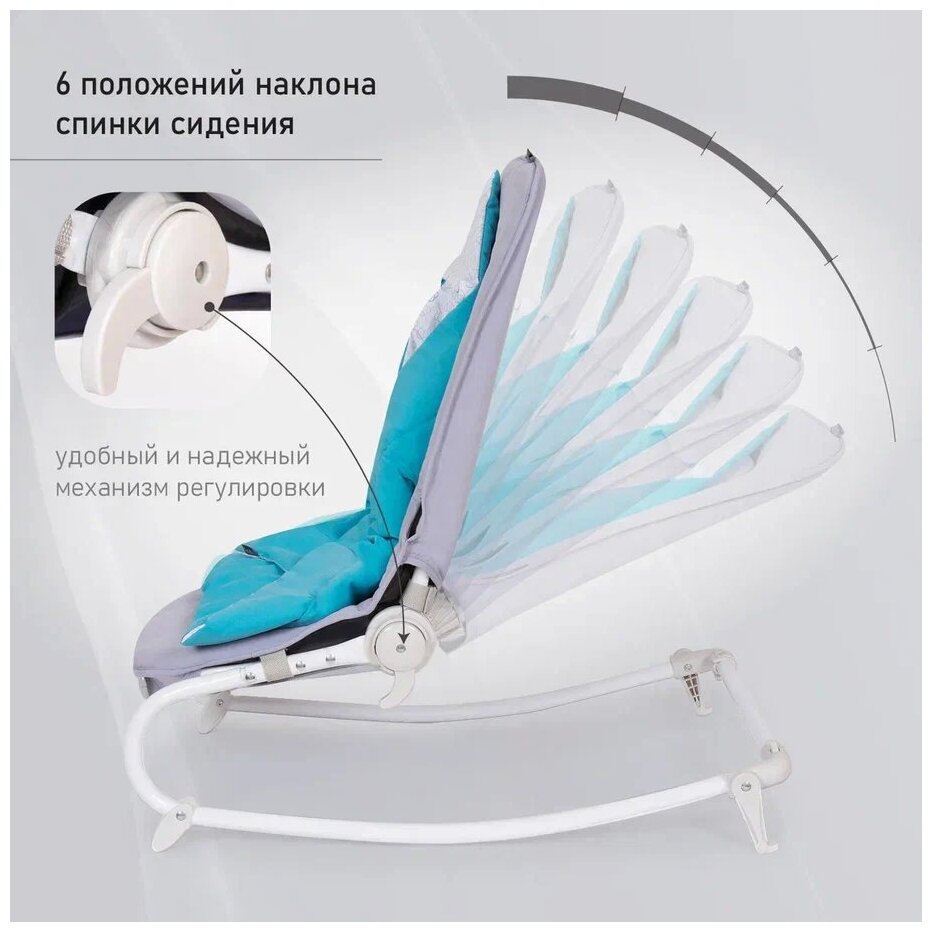 Шезлонг для новорожденных с функцией механического качения Nuovita Mellare M1 (Grigio turchese stella/Серо-бирюзовая звезда) 4 969 ₽